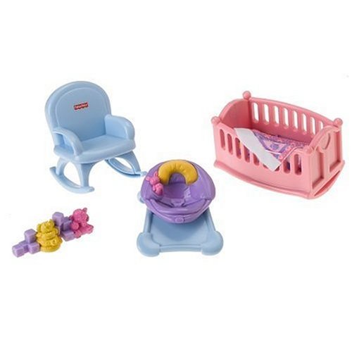 Along with the "My First Dollhouse", I purchased this "Baby's Room" and other room and family member specific sets for my then eighteen month-old granddaughter due to her expecting a new baby sister. She is now about three years old, and is still as delighted with the entire series as much as she was the first day she saw these toys. This set helps to teach children the importance of the role of family, of matching and placing furniture pieces and other parts in appropriate rooms to learn organizational skills, to learn the importance of picking up one's own toys, and more. While it is highly doubtful that she realized just what expecting a new little sister meant, she does enjoy role playing with this toy and will probably learn to share it with her sister in a few months time. The set is very durable, even with active children, and wipes clean with a damp cloth. I like the variety of sets from which to choose to represent household belongings and family members, but would prefer to see the grandmother figure with blond hair like my own, which will never be grey.